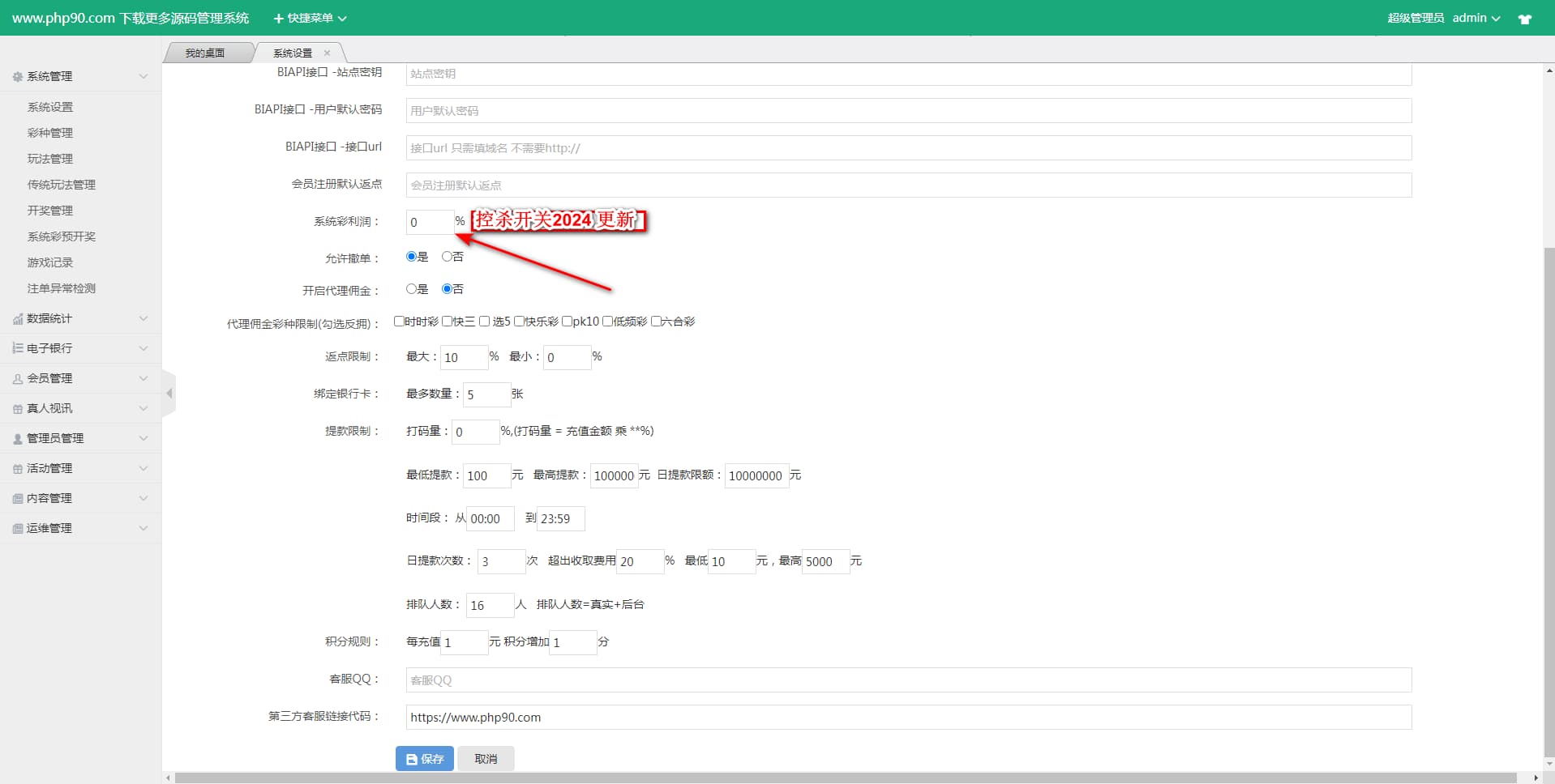 自主可控预设号码,后台预留了真人接口,程序带有双玩法。