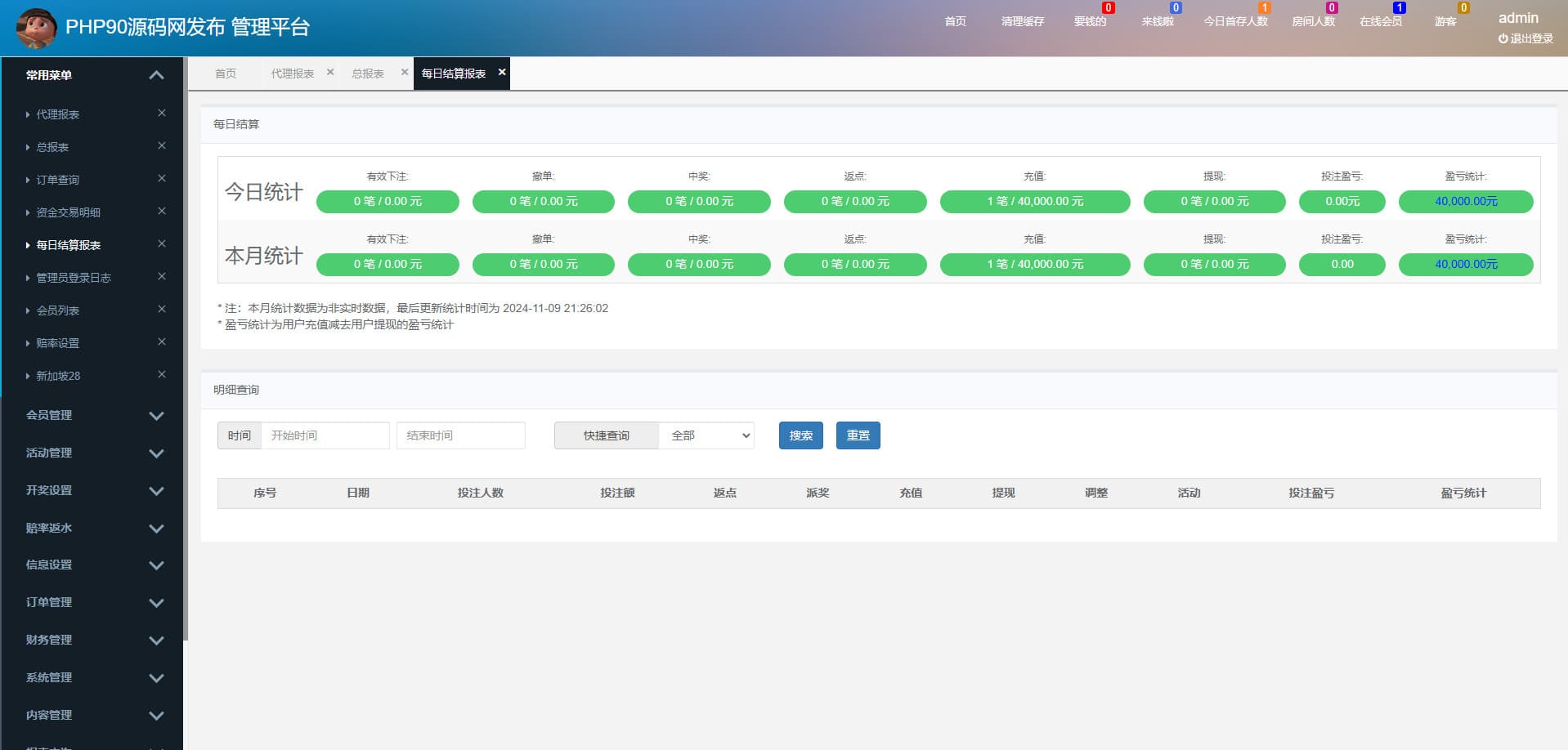新增加,一项,盈亏统计=入款–出款 (独家)