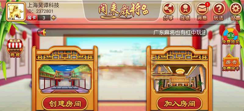 游戏类型: 房卡类子游戏《闲来麻将》