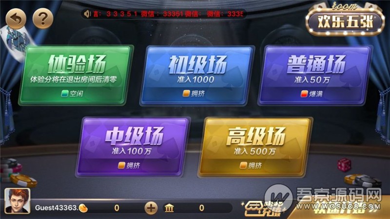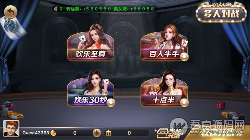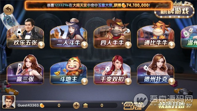 棋牌场: 跑得快、温州麻将、赢三张、通比牛牛、二人牛牛、四人牛牛、斗地主、五人梭哈等。
