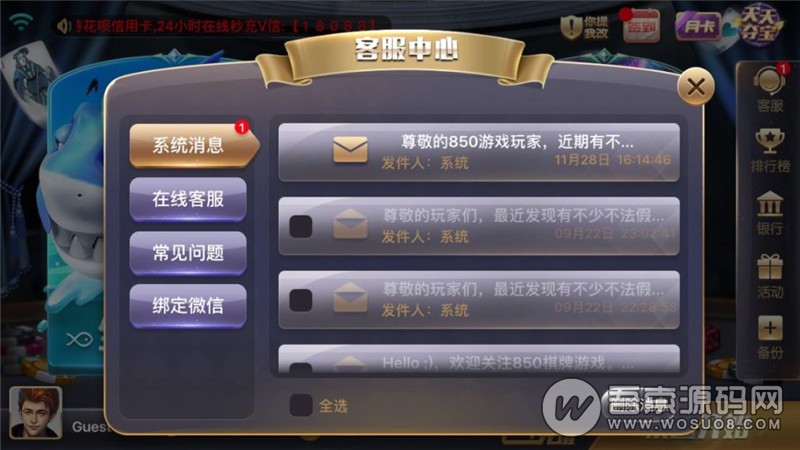 网狐荣耀850棋牌游戏源码 – 全面修复版,含丰富游戏种类与教学视频
