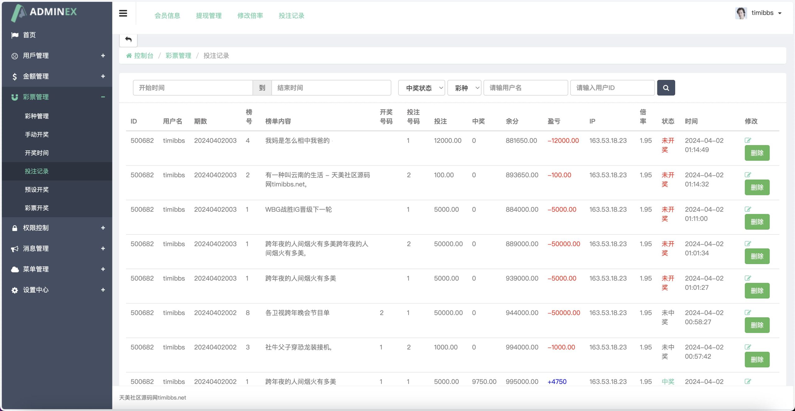 2.下注后,显示的都是未中奖,开奖结算应该是正常的;